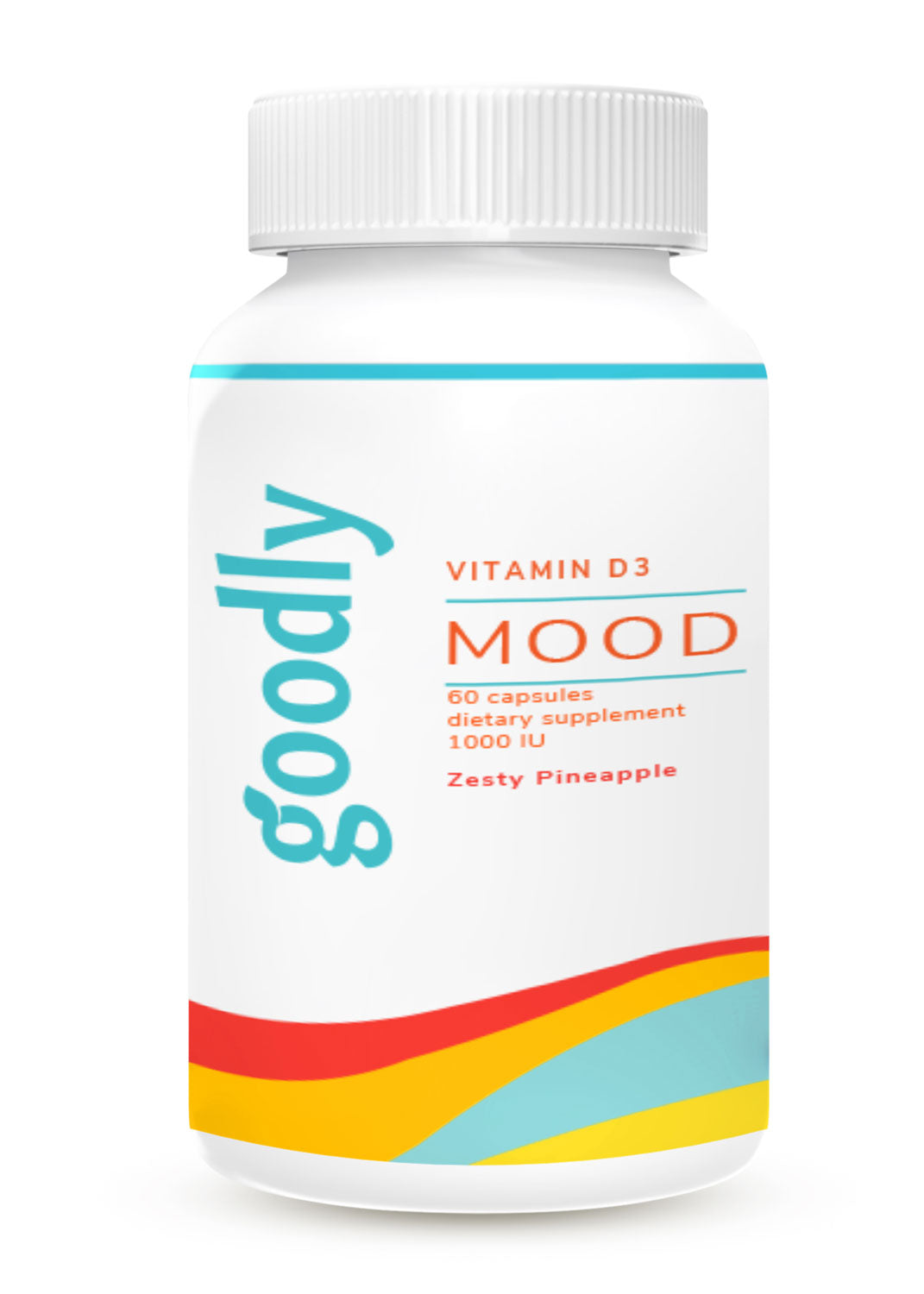 Boost your mood, immunity, and overall well-being with Goodly Vitamin D3 Mood Boost Capsules, now available in a delightful Zesty Pineapple flavor. Each capsule provides 1000 IU of premium Vitamin D3, designed to elevate your energy, support bone health, and strengthen your immune defenses. These capsules are an ideal daily supplement for anyone looking to harness the powerful benefits of the "sunshine vitamin" in a convenient, easy-to-swallow form.